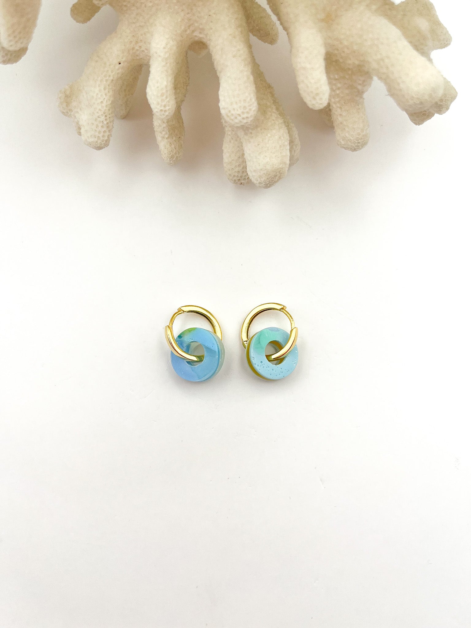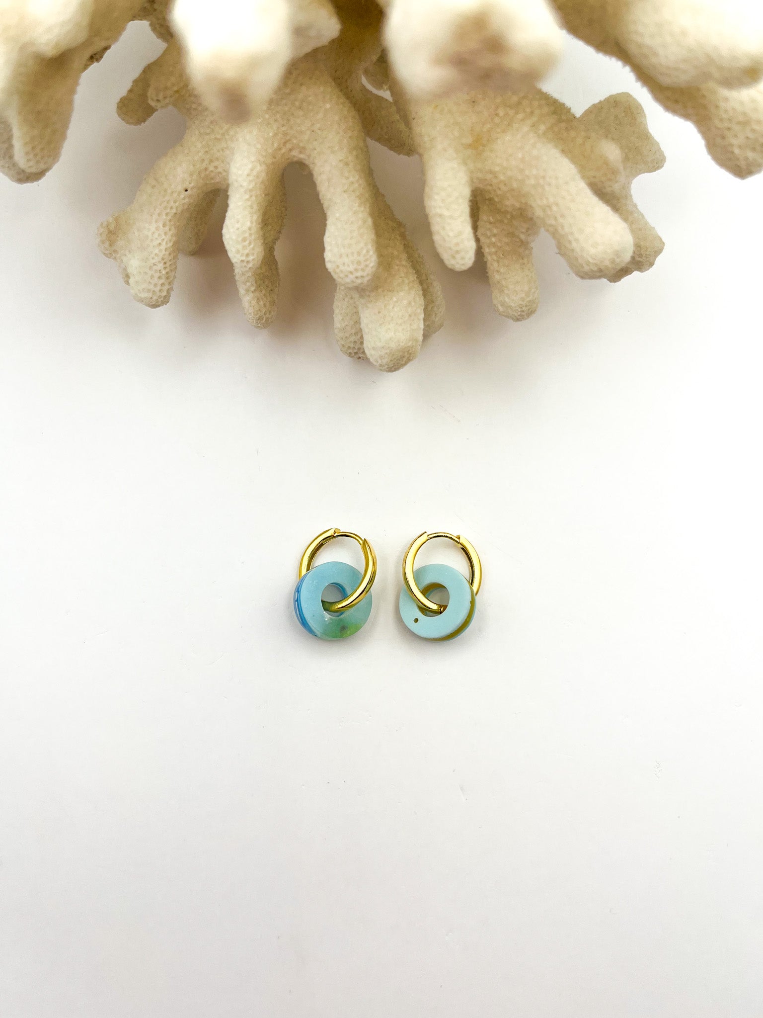 Hoop earrings with recycled surfboard resin circle charm (circles are reversible)