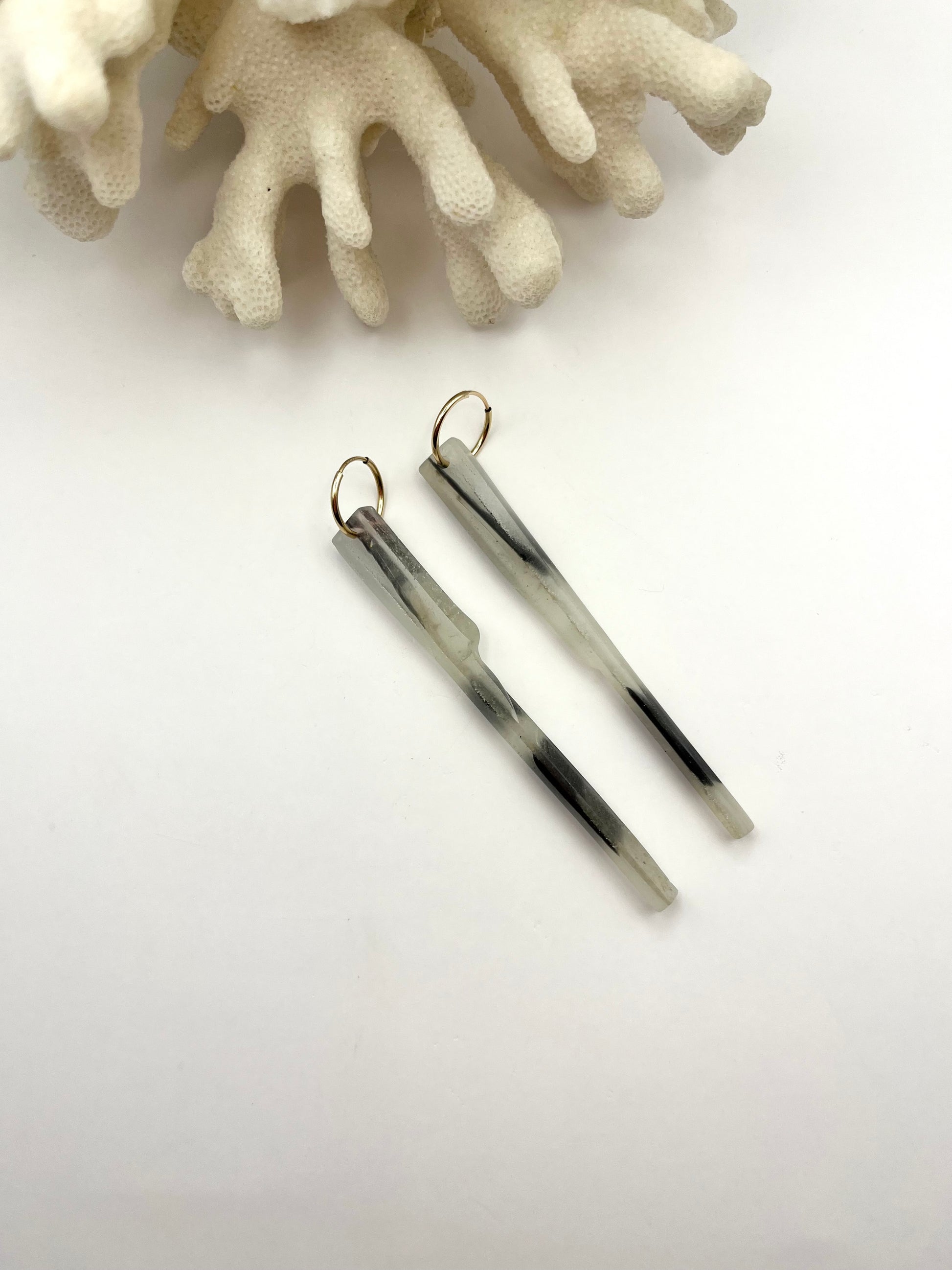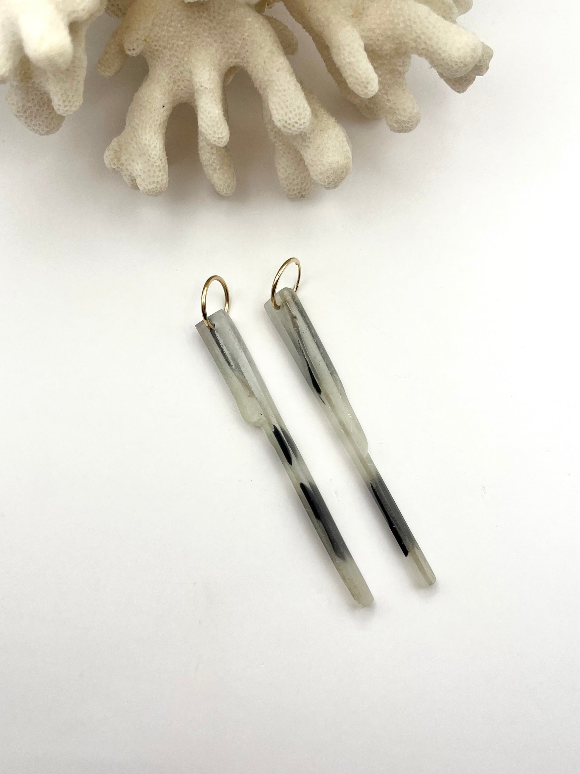 Endless hoop earrings with recycled surfboard resin bar charm